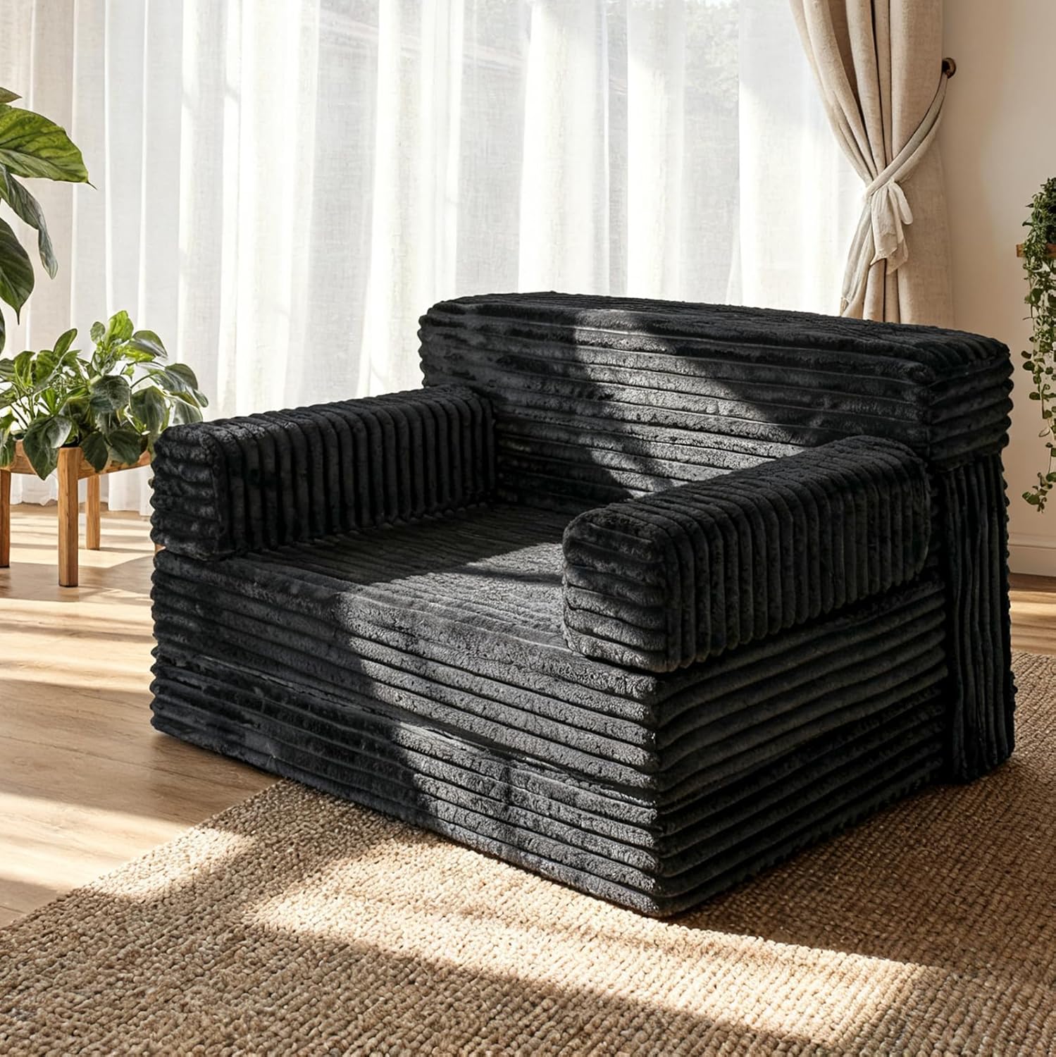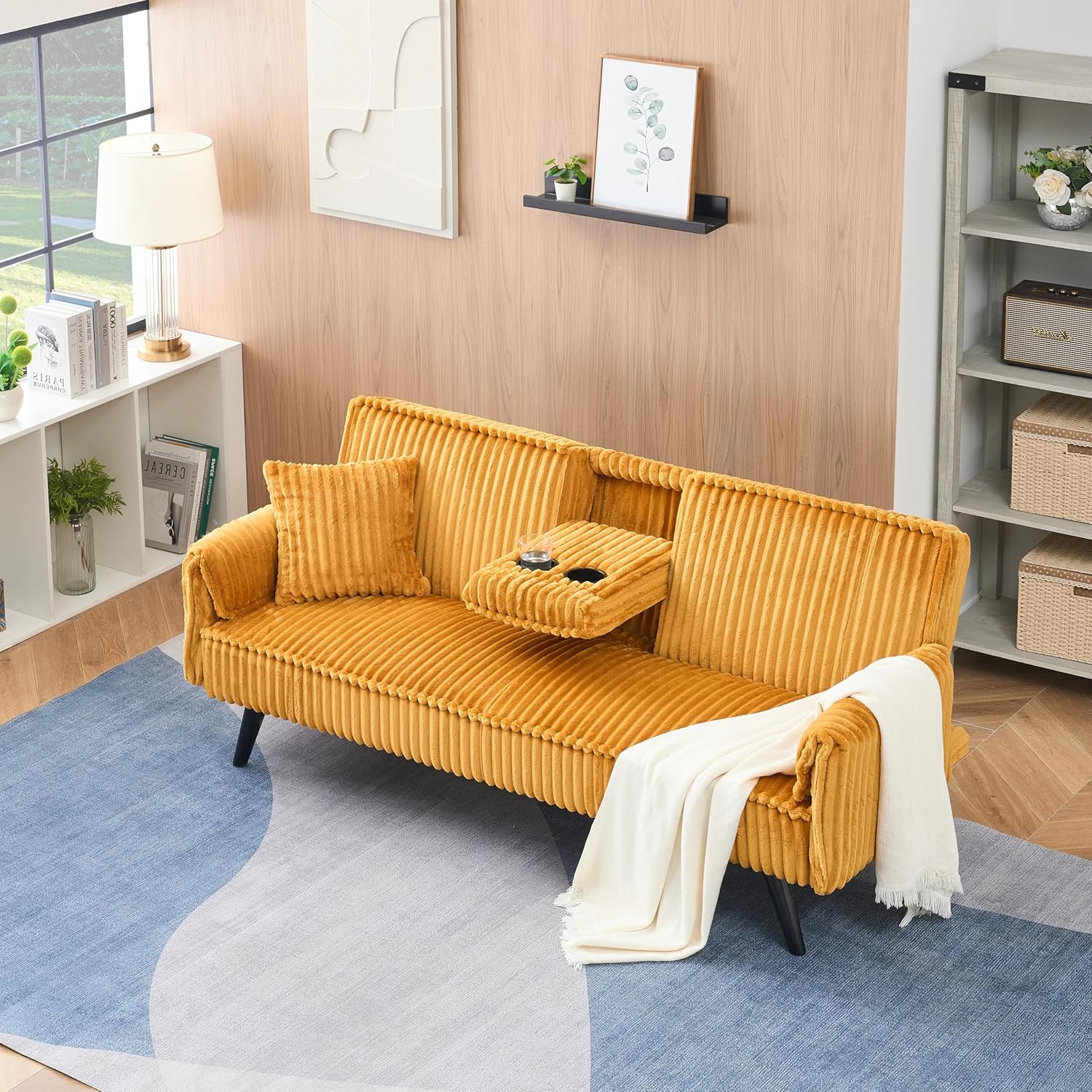 HONBAY Modular Sectional Sleeper Couch with Pull Out Bed, Corduroy L-Shaped Sofa with Storage, Convertible Sectional Couches for Living Room, Blue
