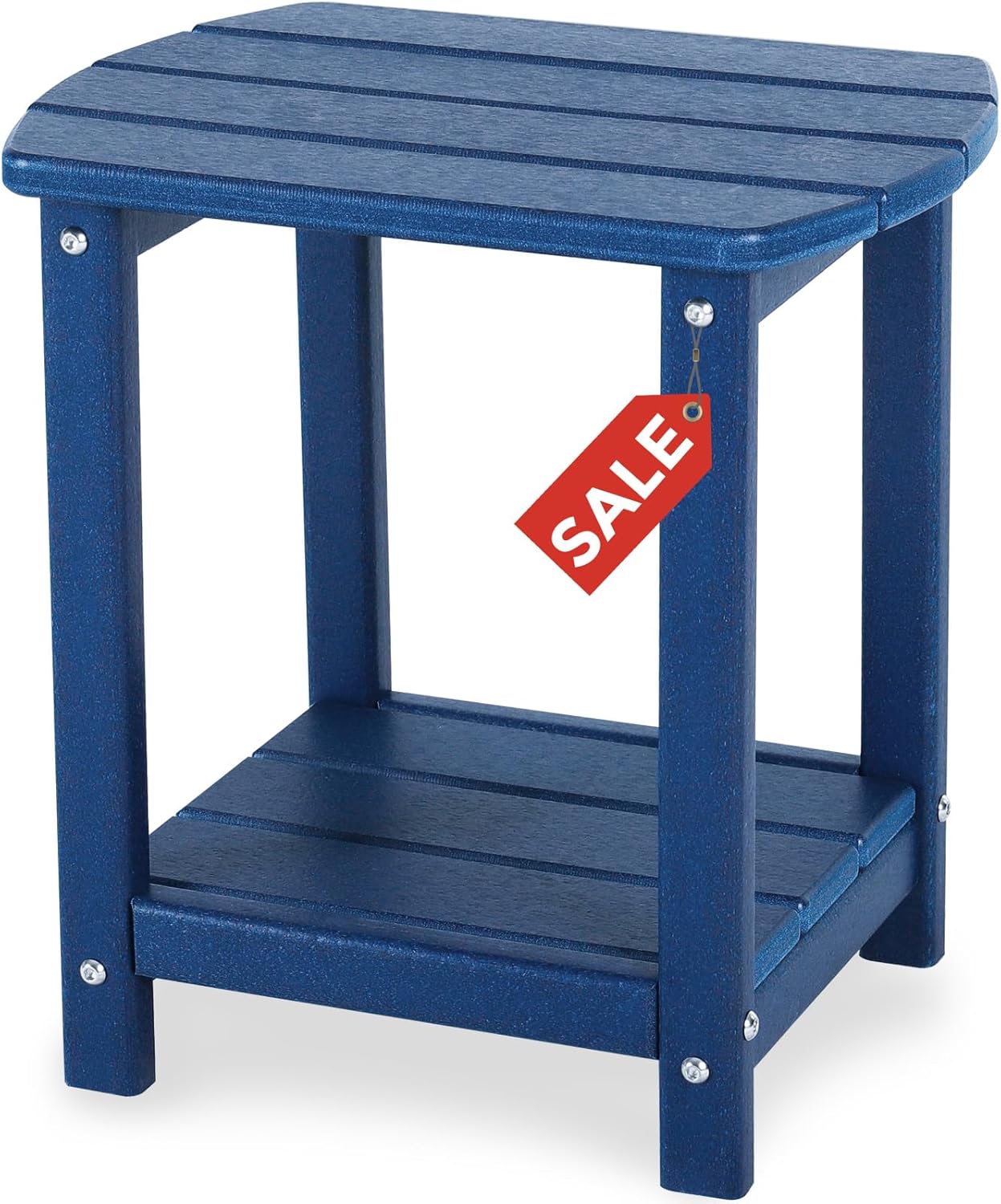 Adirondack Square Outdoor Side Table, 2-Tier Storage Patio Side Table, HDPE End Tables for Backyard Pool Porch Garden Lawn