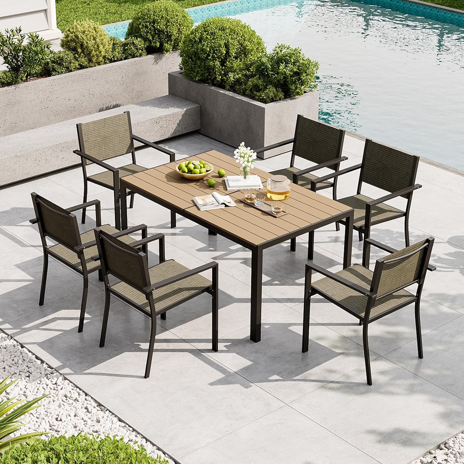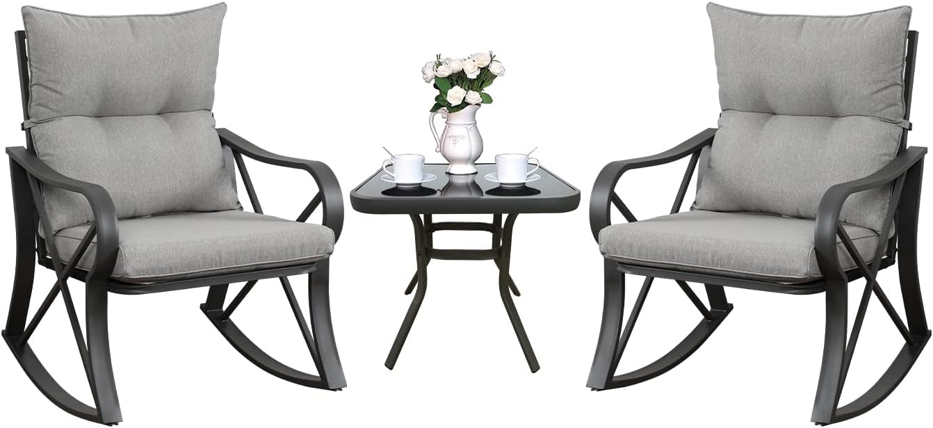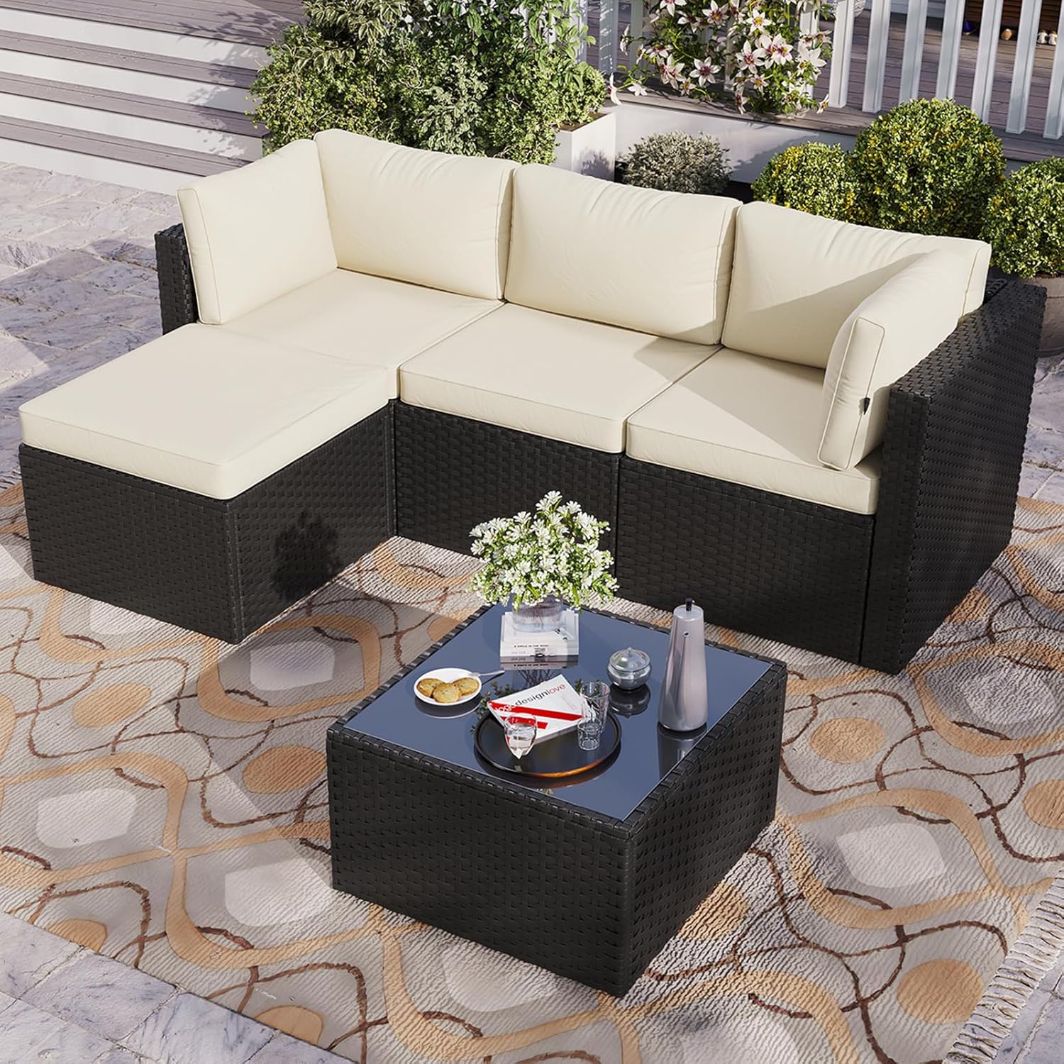 Grand patio 5-Piece Outdoor Furniture Set, 4 Seats Wicker Sofa Conversation Set with Thick Cushions and Coffee Table, for Backyard, Balcony, Garden (Beige)